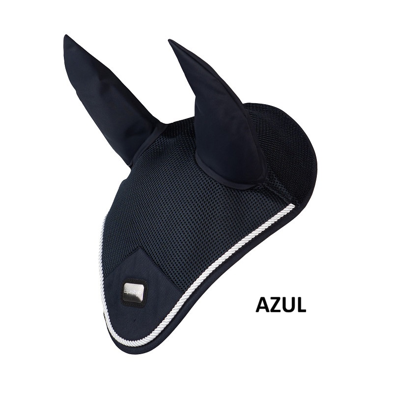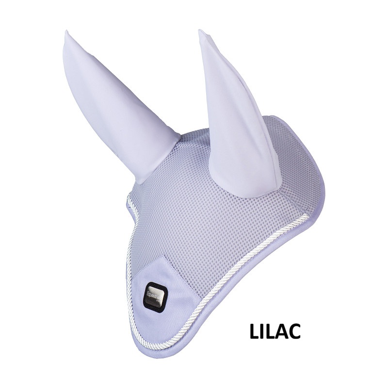 Stylish and functional fly veil from breathable mesh with pearl-accented trim. Flexible ears ensure comfort and movement.