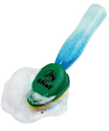 Effol Shampoo-Friend - el cepillo práctico para lavar caballos. El Effol Shampoo-Friend es un cepillo práctico con un dispensador integrado que facilita y hace eficiente el lavado con champú. Los líquidos se pueden aplicar de manera silenciosa y uniforme, lo que lo hace ideal para caballos sensibles. Gracias al sistema de dosificación incorporado, los líquidos ya no se escurren por tus brazos. El cepillo también permite frotar y hacer espuma con el champú de manera uniforme. El Shampoo-Friend es perfecto para limpiar desde la crin hasta el casco. Otros productos de cuidado también se pueden aplicar fácilmente.