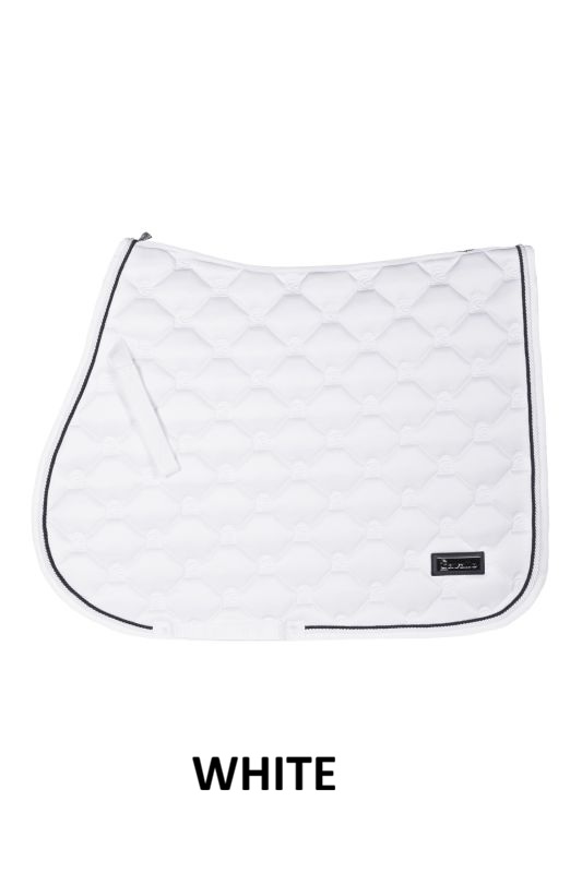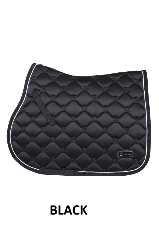 Una elegante y versátil manta de silla hecha de material superior de alta calidad, ligeramente brillante. Patrón de acolchado en rombos elaborado en todo el contorno con el logo integrado de Cavallo. Equipada con una pequeña y exclusiva etiqueta de Cavallo en apariencia de metal oscuro. La cuerda de color plateado mate le da a la manta de silla un aspecto lujoso. El forro de malla de secado rápido y transporte de humedad es especialmente amigable con la piel y ofrece máxima comodidad. Un relleno que mantiene la forma permite que la manta de silla se coloque perfectamente en el lomo del caballo. Las correas superiores e inferiores de la cincha se pueden fijar ambas con un cierre de velcro.