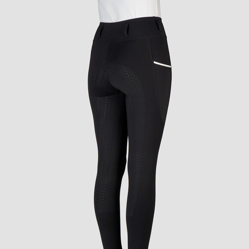 Comfortable riding tights made from quick-drying and breathable fabric for optimal performance. Treated with Polygiene OdorCrunch for long-lasting freshness. Finished with elegant pearl glitter details, a tonal silicone full seat, and practical side pockets for your phone. Product specifications: - Quick drying and breathable material - Treated with Polygiene OdorCrunch for odor protection - Waist band with belt loops - Two side pockets, deep enough for mobile phone - White pearl glitter rubber printed artwork and silver accents - Tonal printed silicone full seat - Based on bestseller riding tights Perfection